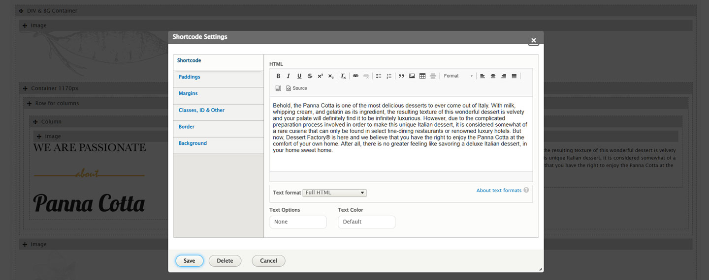- Page Builder: A page builder feature that allows the Dessert Factory team to easily create and organize pages using a drag-and-drop interface without requiring in-depth technical knowledge.