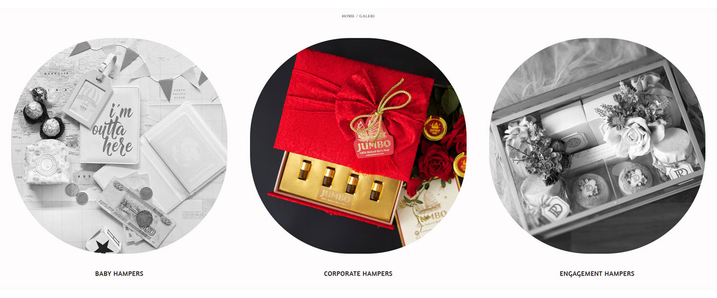 - Product Catalog: A page providing a complete catalog of gift packaging and hampers with detailed information, high-quality images, and pricing.